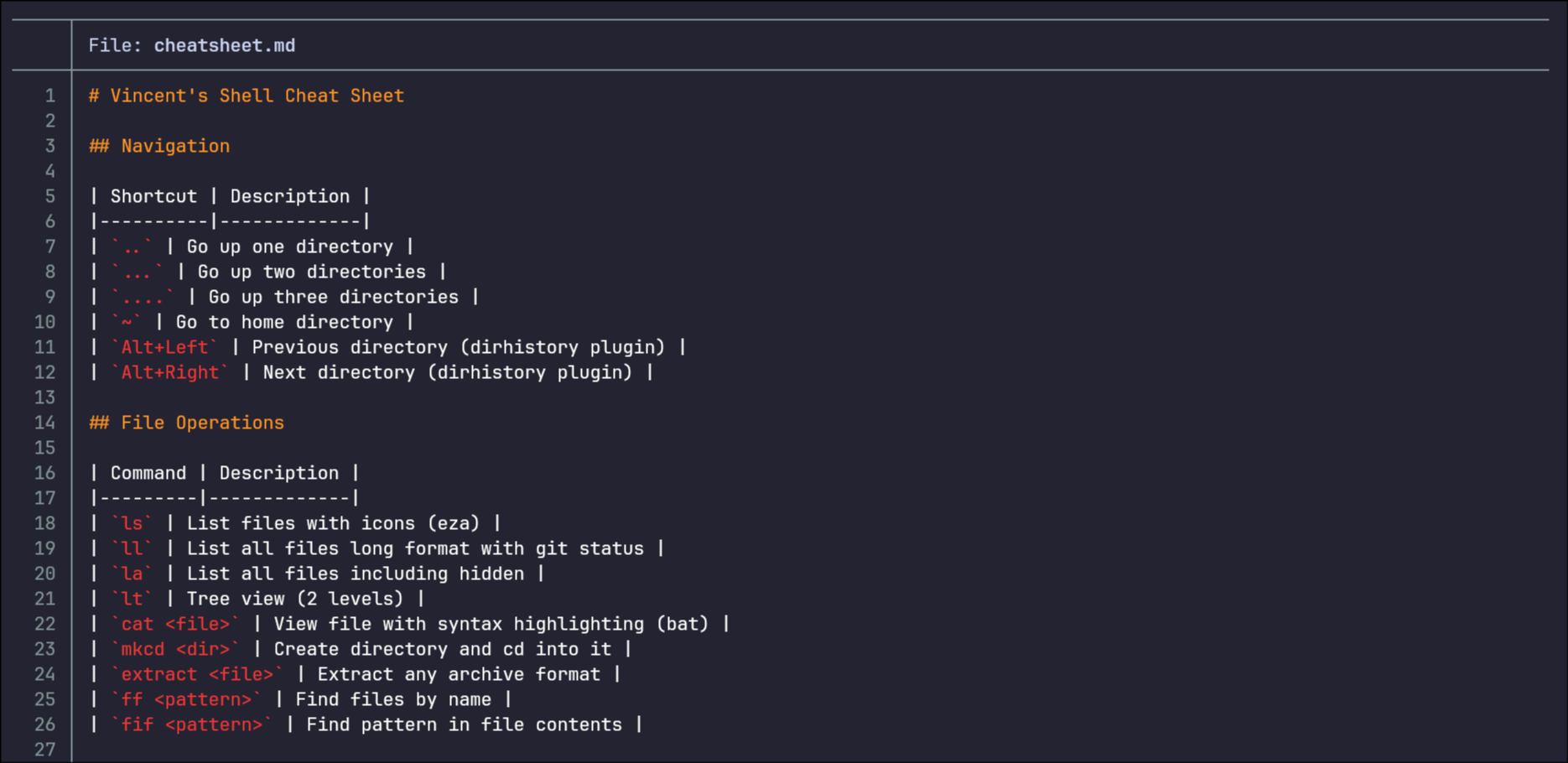 bat feels like a lightweight “vim for viewing.” Syntax highlighting. Line numbers. Clean formatting. No editing mode.